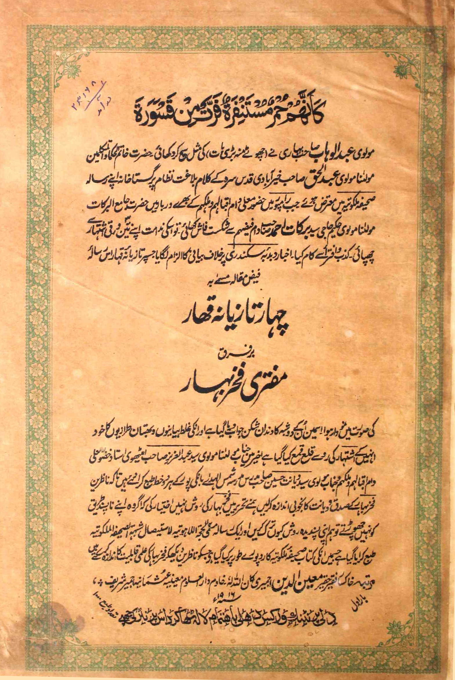 Char Tazyana Qahar Muftari Fakhr-e-Bahar